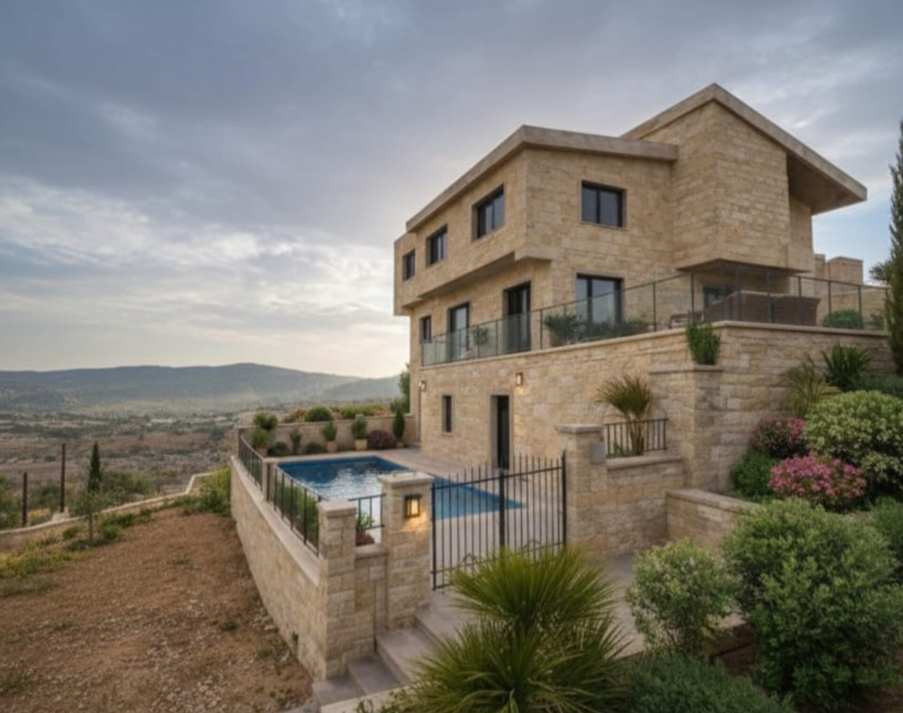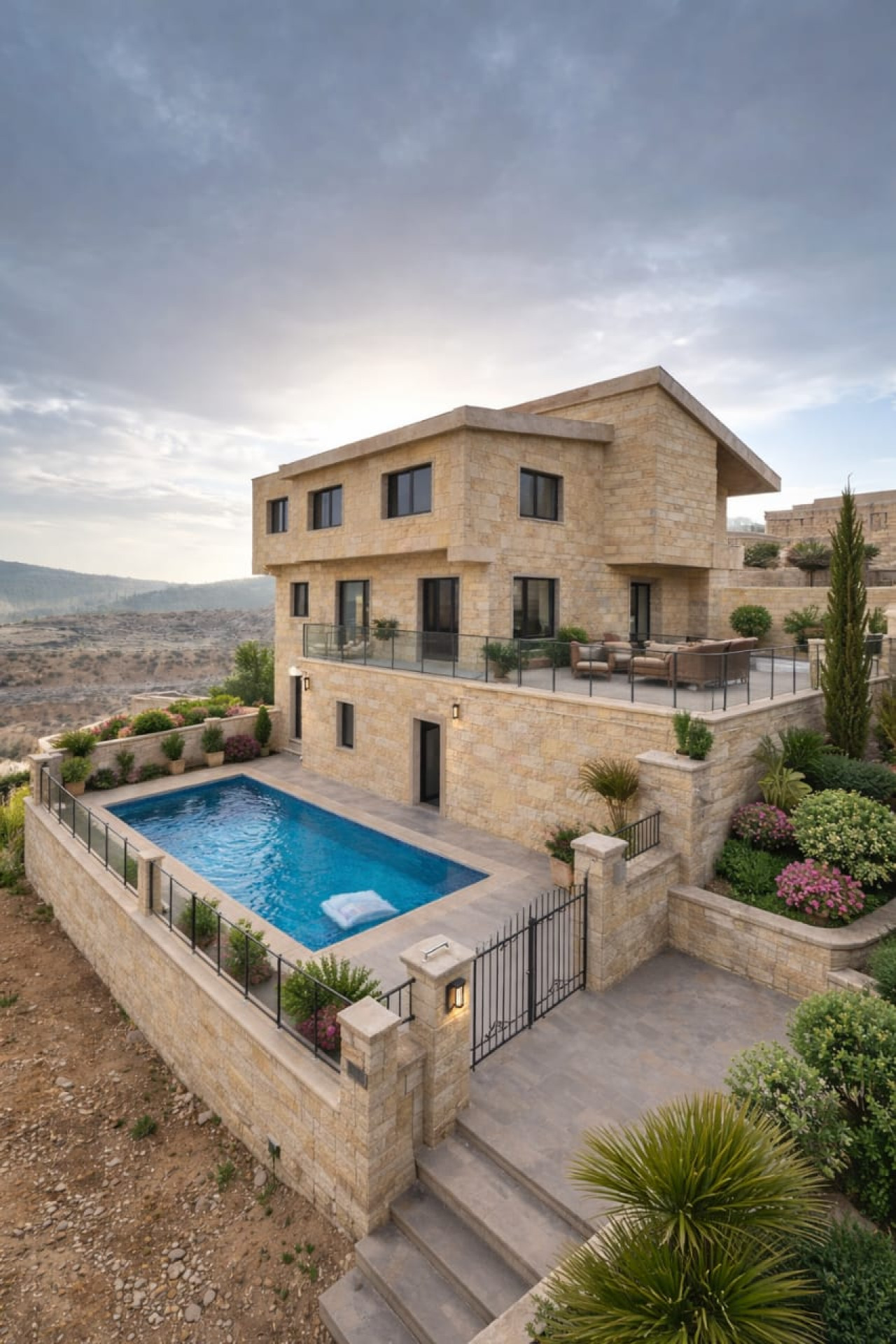 Projekt Al Jazira C, Rohbau-Villa mit 3 Etagen, Grundstücksfläche 600–700 m², luxuriöse Steinfassade, Möglichkeit für privaten Garten und Pool, mit kompletter Ausbauunterstützung, in attraktiver Lage nahe aller Dienstleistungen.