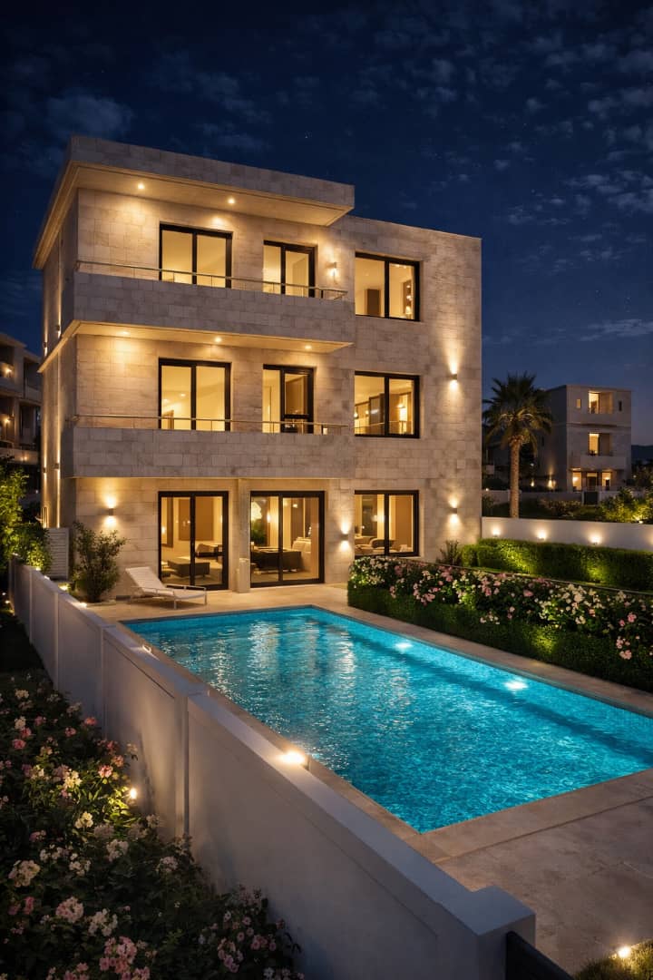 Surface & Design : La villa se compose de 3 étages spacieux, adaptés aux grandes familles, avec un design moderne prêt à être fini selon vos goûts.